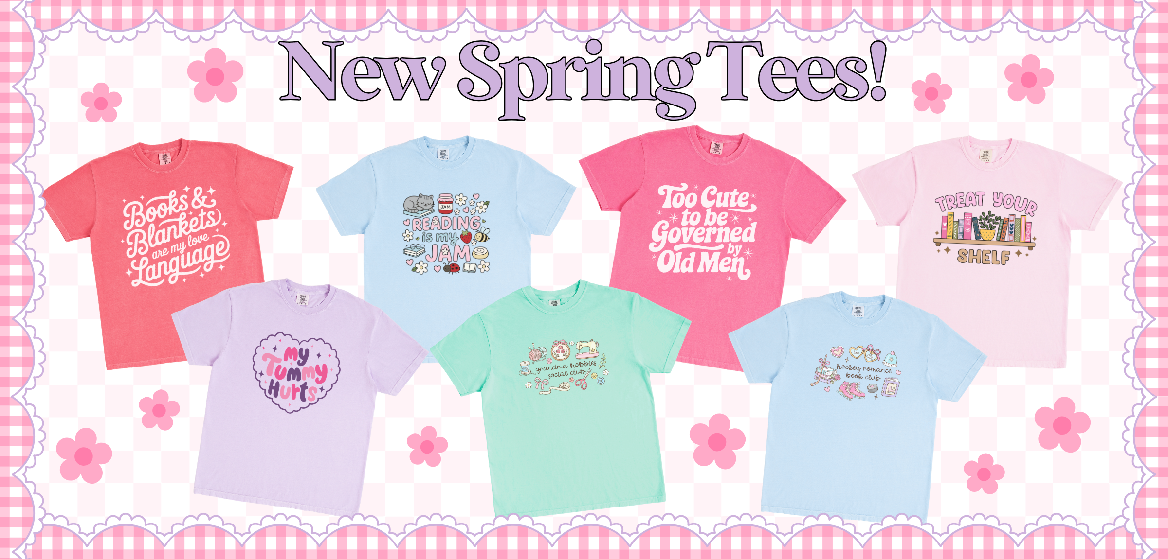 We’re a small business bursting with big personality! From floral glassware and cozy-cute apparel to bookish finds and stationery that makes you smile, everything we create is made to add a pop of color and happiness to your everyday. If you love bright colors, florals, fun details, and all things girly, you’re in the right place!